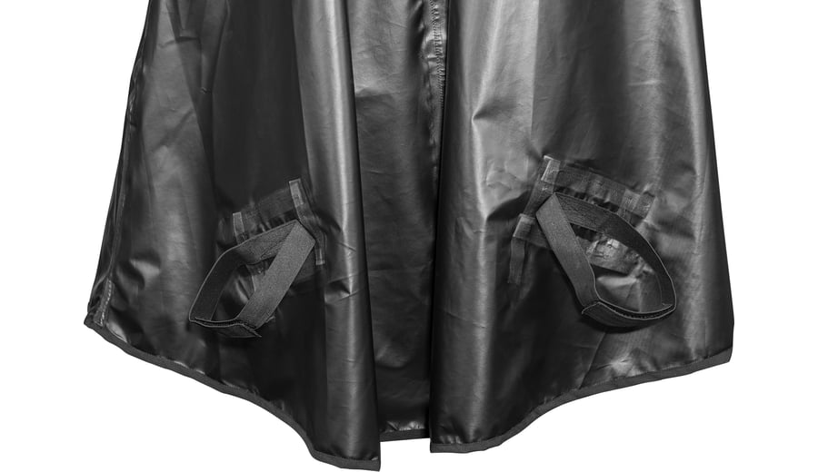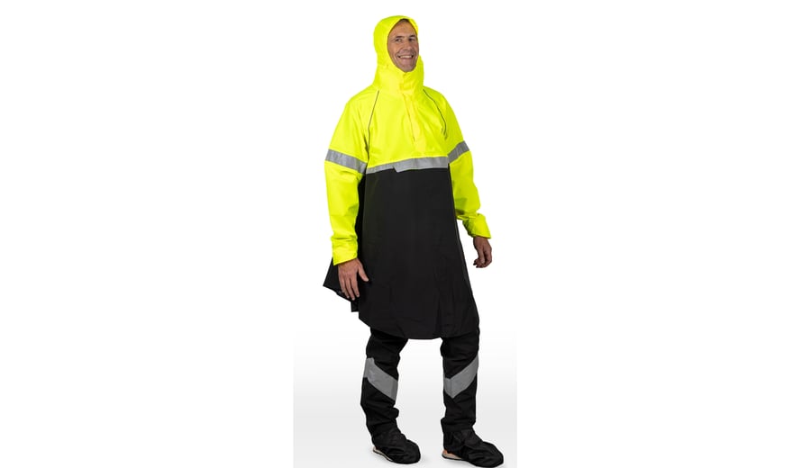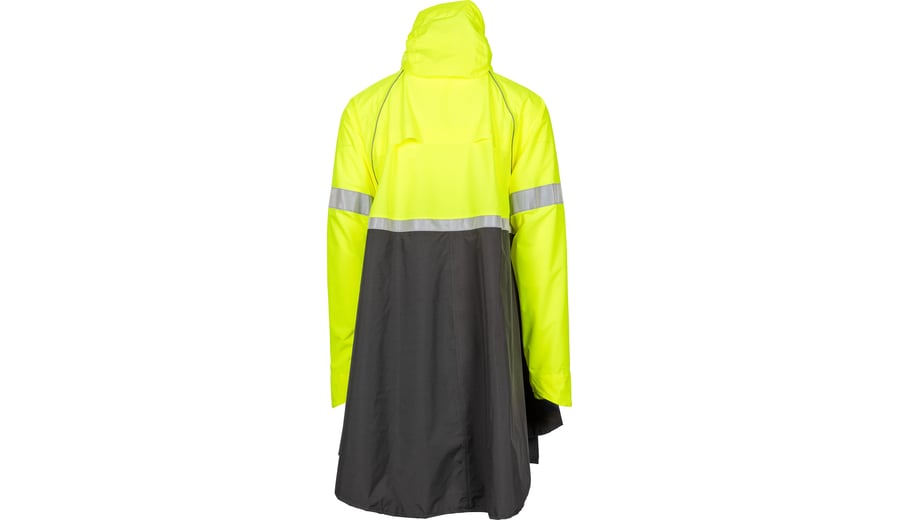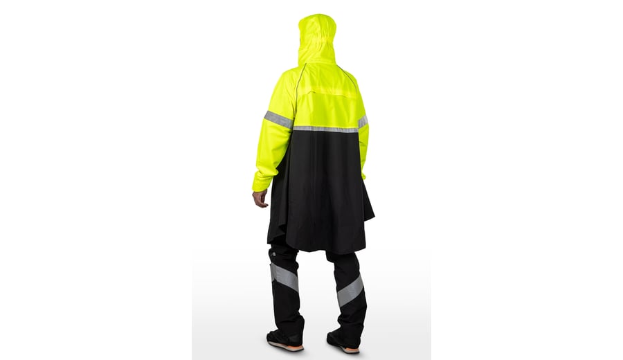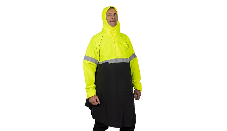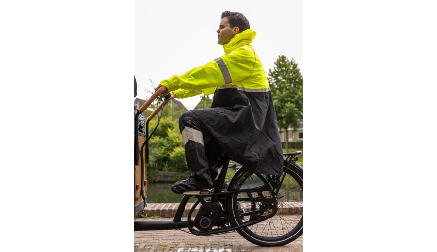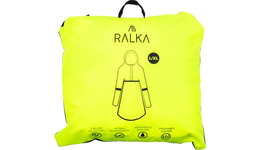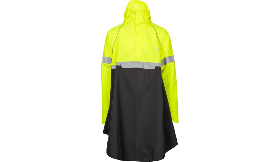 | Kenmerken | • fietsponcho met goede zichtbaarheid en extra lang voor optimale bescherming tegen regen • duurzaam polyester pongee materiaal met een waterdichte PU coating (5.000 mm) en ademend vermogen (800 mm) • getapete naden • reflecterende banen voor extra zichtbaarheid in het donker • 2 elastische kllittenbandsluitingen aan de binnenkant om de poncho vast te maken aan je benen voor extra goede bescherming • ruime elastische capuchonopening • 1 voorzak met overfly klittenbandsluiting • poncho is opvouwbaar in de voorzak |
