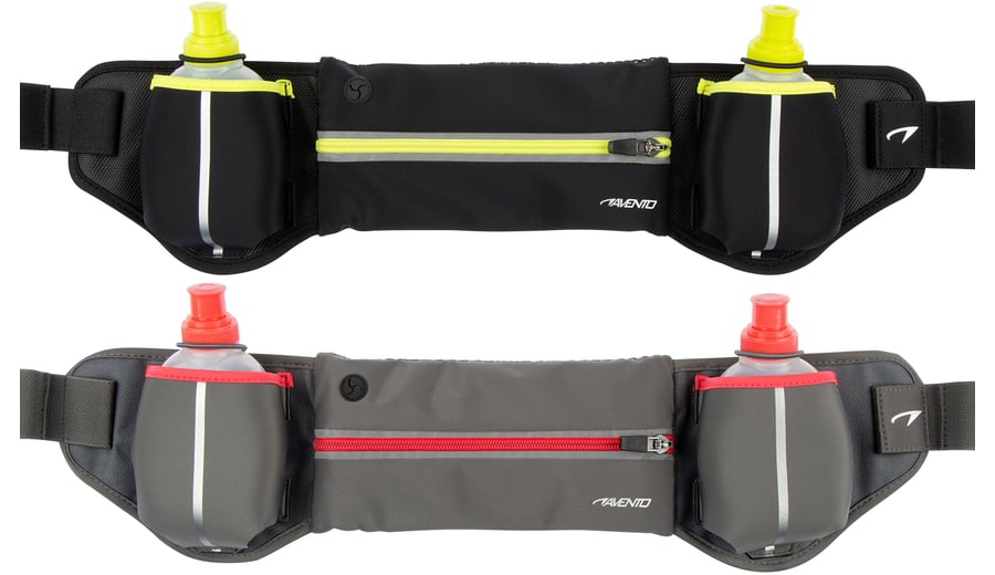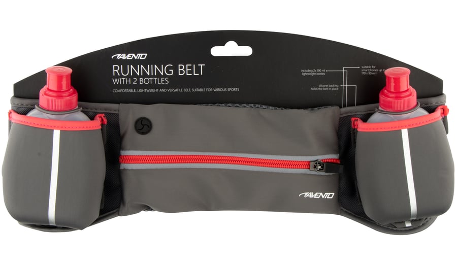 | Kenmerken | • heupstuk met polstering en silicone antislip noppen • verstelbare elastische band met snelsluiting • neopreen flessenhouder • vakje met ritssluiting, geschikt voor smartphones met een afmeting tot 170 x 90 mm • opening voor oortjes • 2 lichtgewicht inknijpbare flessen met drinktuit, inhoud ca. 190 ml per fles • reflecterende accenten |