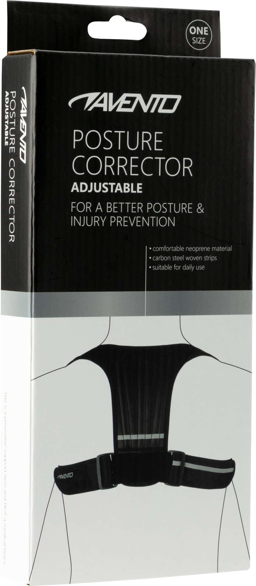 | Kenmerken | • corrigeert houding van rug, nek en schouders • zacht comfortabel neopreen materiaal • makkelijk verstelbaar door middel van klittenband • 3 metalen geveerde baleinen voor extra ondersteuning • wasbaar via handwas |