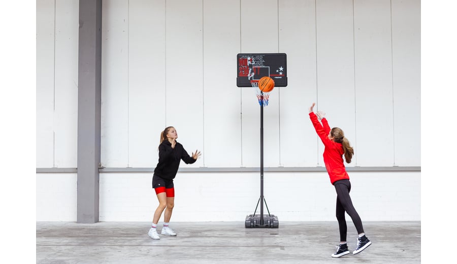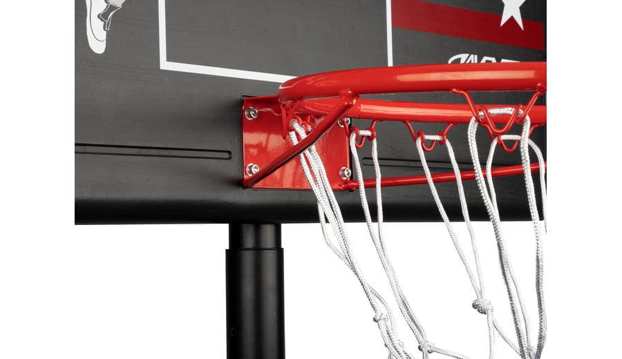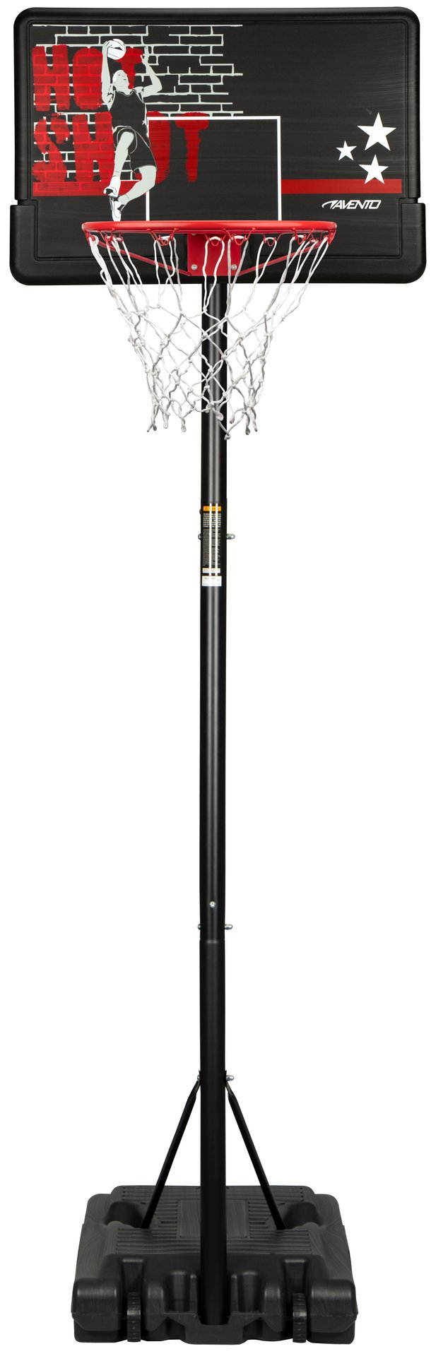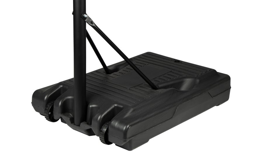 | Kenmerken | • verplaatsbare metalen basketbalstandaard • metalen stang, diameter ca. 5 cm, verstelbaar in hoogte vanaf ca. 190 cm tot ca. 260 cm • 16 mm metalen ring met epoxy coating, diameter ca. 43 cm • weerbestendig nylon net • PE voet kan gevuld worden met zand of water voor stabiliteit, afmeting ca. 90 x 60 x 15 cm • eenvoudige verrijdbaarheid onder bepaalde hoek d.m.v. stevige ingebouwde wieltjes • vierkant HDPE bord, afmeting ca. 90 x 60 x 2 cm • voor binnen- en buitengebruik |