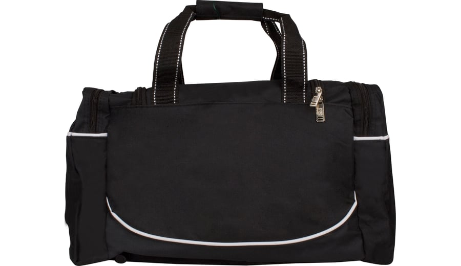 | Kenmerken | • waterafstotend • hoofdvak voorzien van ritssluiting aan de bovenzijde • zijvakken met ritssluiting aan beide zijden, bijv. voor het opbergen van schoenen • 2 handgrepen samen te voegen d.m.v. klittenbandsluiting • afneembare, verstelbare schouderband voorzien van schouderstuk met foam vulling • 4 stootdoppen aan de onderzijde van de tas • op diverse plaatsen voorzien van bies • afmeting ca. 48 x 28 x 27 cm |
