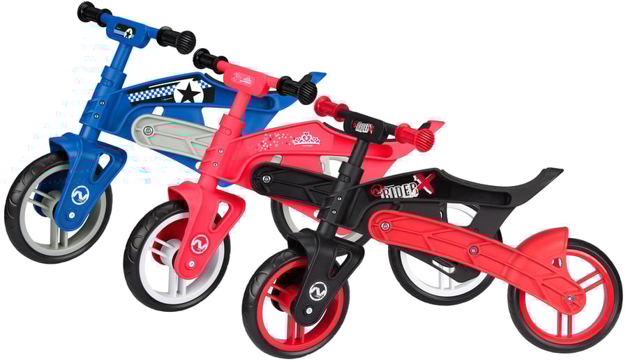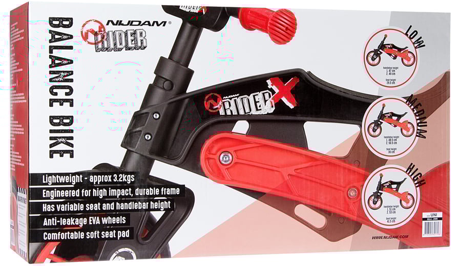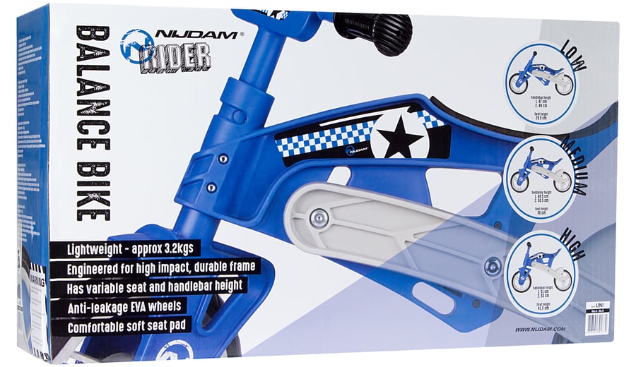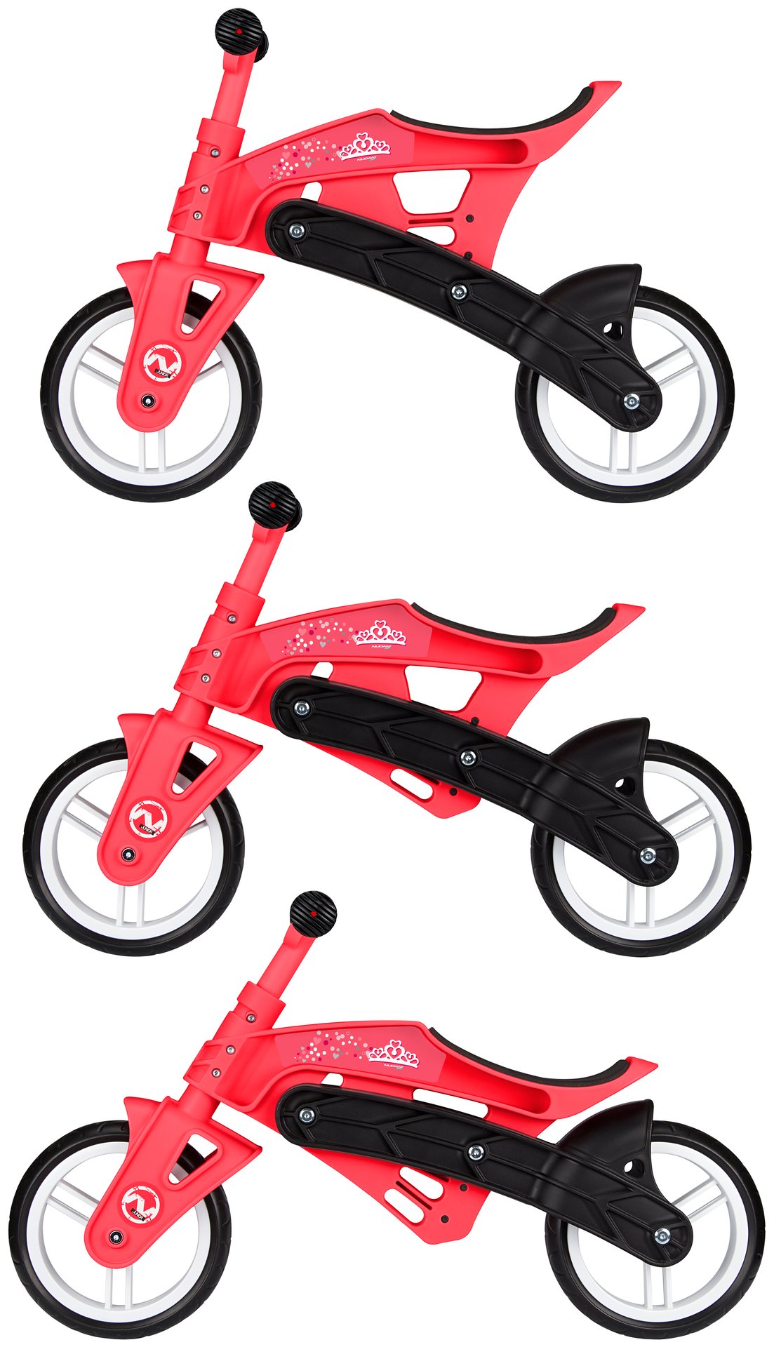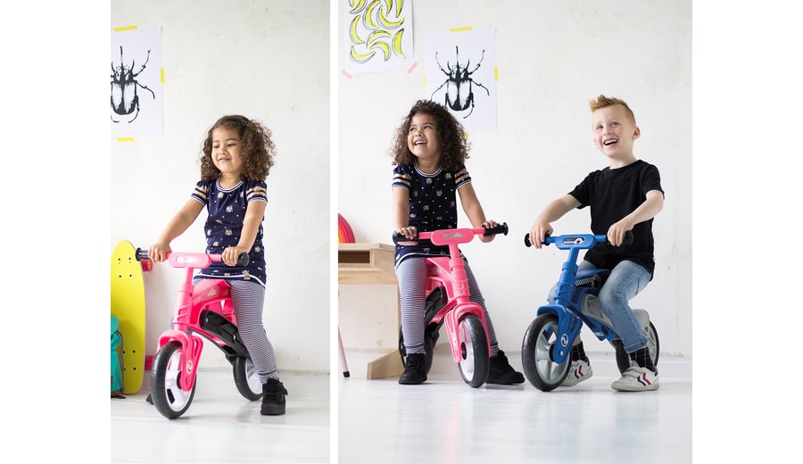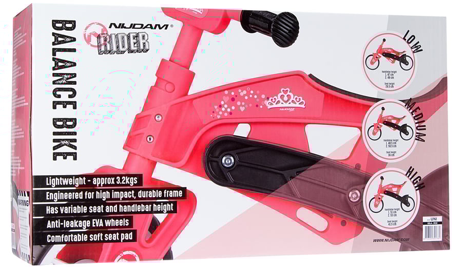 | Kenmerken | • lichtgewicht loopfiets met duurzaam TPO kunststof frame • PVC handgrepen • ontworpen om botsingen te doorstaan • voor kinderen van 2 tot 6 jaar • hoogte stuurstang in 2 standen verstelbaar: 51 > 53 cm • hoogte comfortabel zachte zitting in 3 standen verstelbaar: 28 > 35 > 41 cm • stevige EVA banden, diameter 24 cm • breedte band 5 cm • maximale belasting 50 kg |