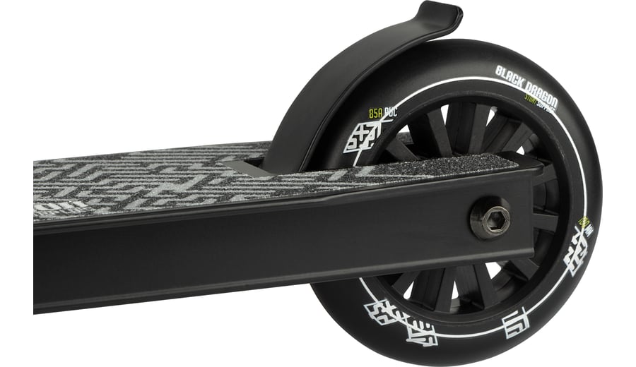 | Kenmerken | • aluminium/heavy duty stalen frame met neochrome finish • sterke rechthoekige frameconstructie • aluminium voetenplank met griptape • rubberen handgrepen, uiteinden voorzien van stootbescherming • ABEC 7 kogellagers • 85A PU spaakwielen, PP core, afmeting 100 x 24 mm • niet opvouwbare/demontabele stuurstang • triple stangklem • voetrem op het achterwiel • breedte stuur 44.5 cm • hoogte stuurstang 83 cm, niet verstelbaar • afmeting voetplank 48 x 10.6 cm • gewicht ca. 3.7 kg • maximale belasting 100 kg |