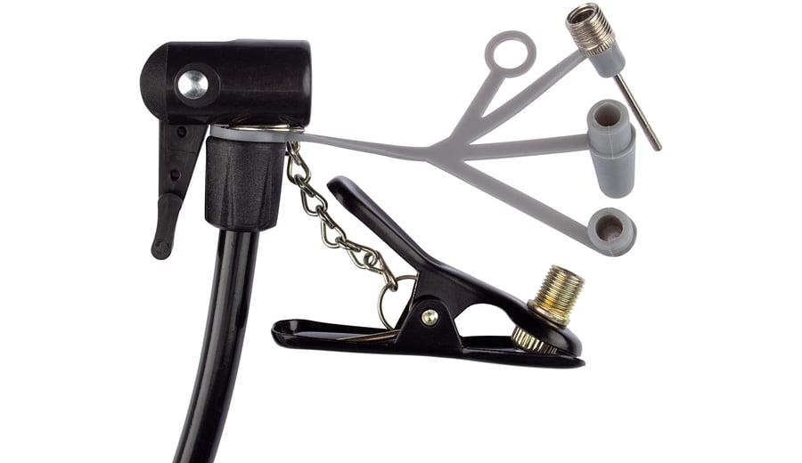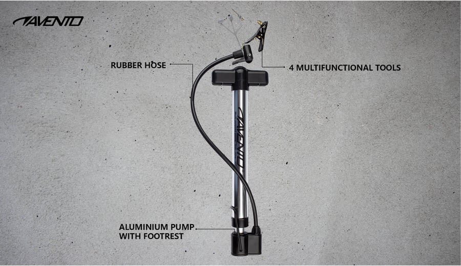 | Kenmerken | • stevige, multifunctionele pomp met voetsteun • aluminium buis met plastic onderdelen • rubberen slang (ca. 40 cm) • 4 multifunctionele hulpstukken • lengte 33 cm • diameter 3,5 cm |