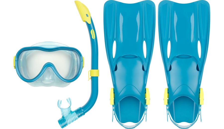 | Kenmerken | • polycarbonaat lens • PVC masker • PVC zwemvinnen • PVC snorkel • snorkel voorzien van waterafvoerventiel en veiligheidsluchtuitlaat |