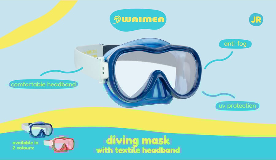 | Kenmerken | • comfortabel duikmasker voor kinderen • polycarbonaat lens met PVC masker • makkelijk verstelbare en comfortabele hoofdband (bestaat uit 60% nylon/20% spandex/20% polyester) • anti-condens, voorkomt beslaan van de bril • UV bescherming |