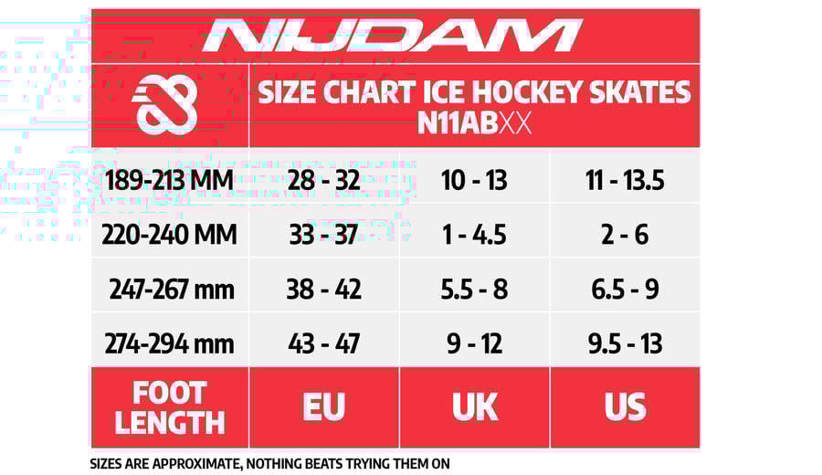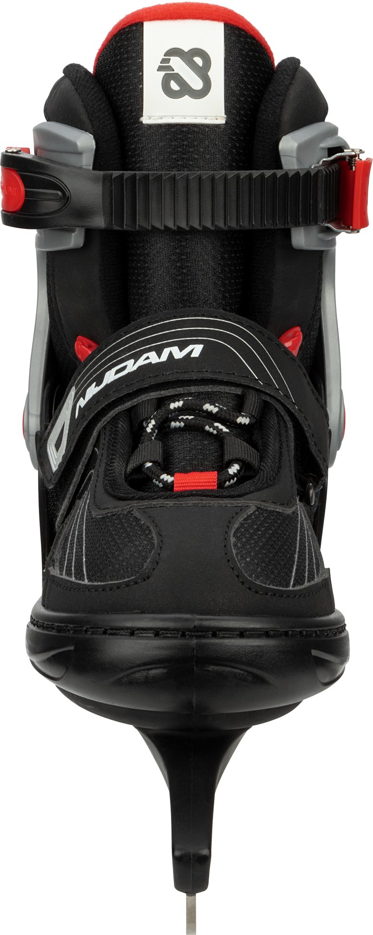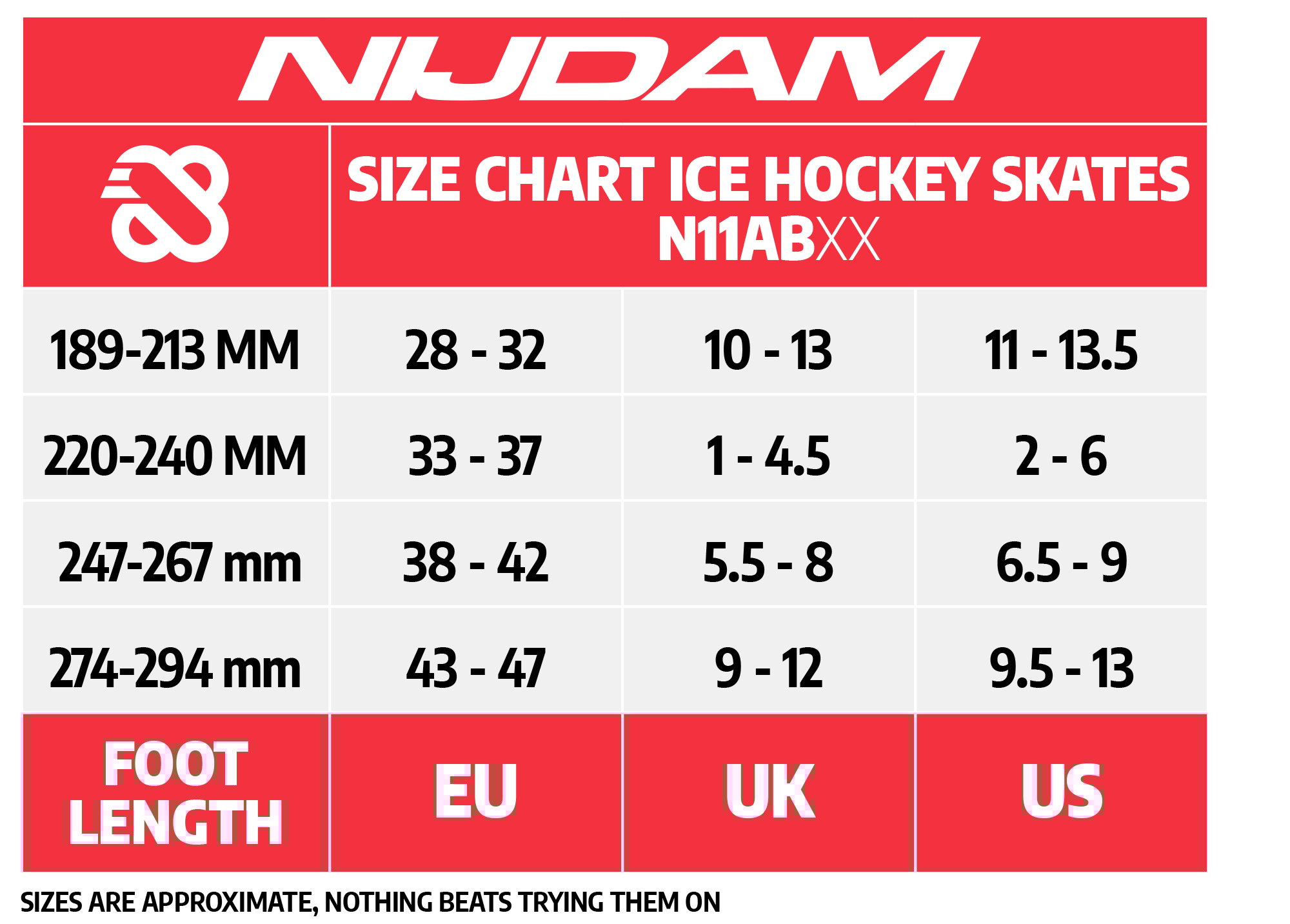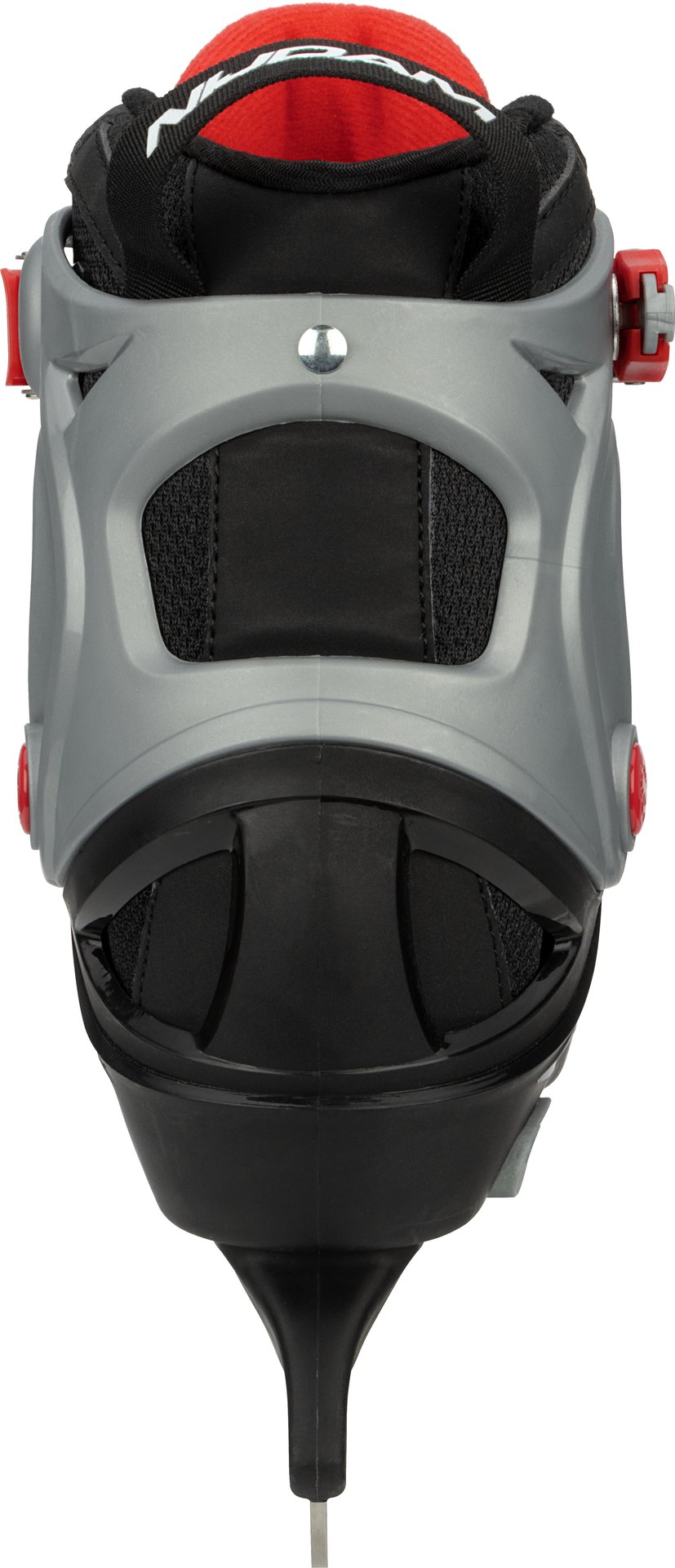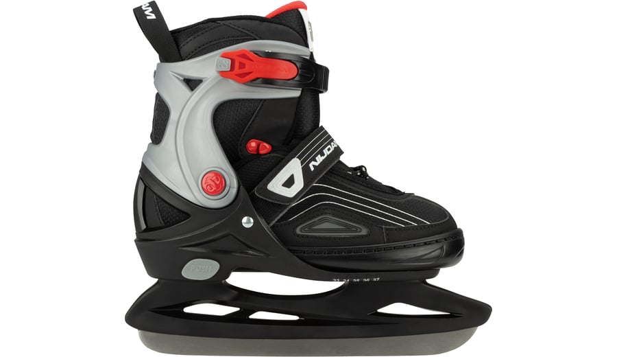 | Kenmerken | • In 5 maten verstelbaar d.m.v. drukknop aan de hiel • Design: semi-softboot van schokabsorberend PE en PU leder/polyester mesh • Binnenschoen: comfortabel polyester met een voering van EVA en parelschuim • Sluitingen: snelsluiting met PU lederen powerstrap en veters • Chassis: high-impact PP schaatshouder • IJzers: roestvaststalen ijshockeyschaatsijzers • Schaatsijzers zijn reeds voorgeslepen |
