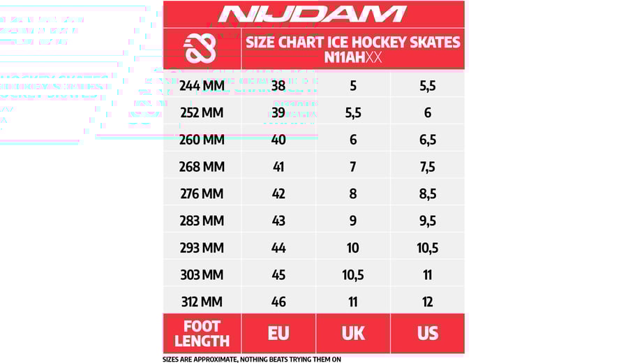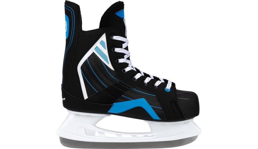 | Kenmerken | • stevige ijshockeyschaats voor volwassenen • design: polyester k230 mesh + 1.4 mm PU leder ijshockeyschoen • schoen: nylon teenkap • binnenschoen: polyester velvet voering • sluiting: luxe vetersluiting • chassis: geklonken PE schaatshouder • ijzers: roestvaste ijshockeyschaatsijzers • schaatsijzers zijn reeds voorgeslepen |