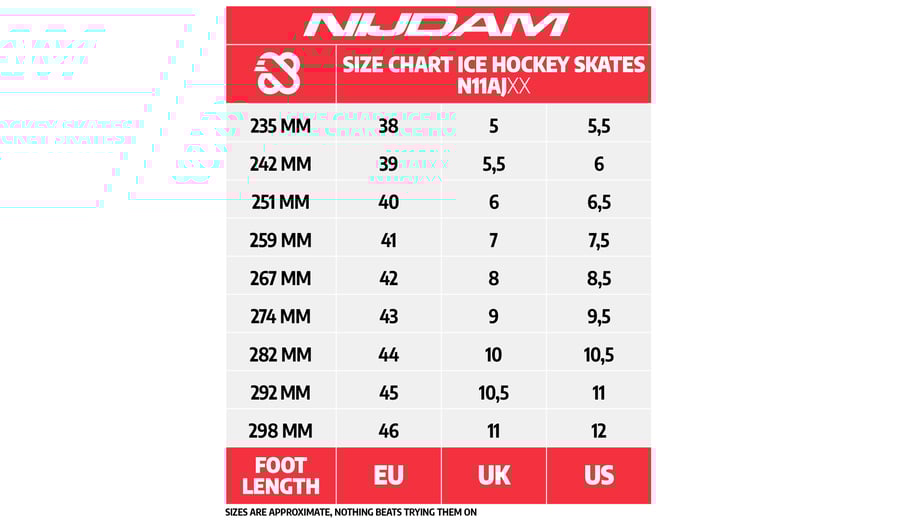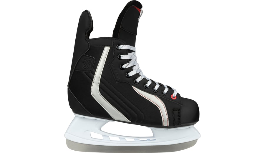 | Kenmerken | • Design: Polyester K230 mesh ijshockeyschoen • Schoen: Nylon teenkap • Binnenschoen: Polyester velvet voering • Sluiting: Luxe vetersluiting • Chassis: Geklonken PE schaatshouder • IJzers: Roestvrijstalen ijshockeyschaatsijzers • Schaatsijzers zijn reeds voorgeslepen |