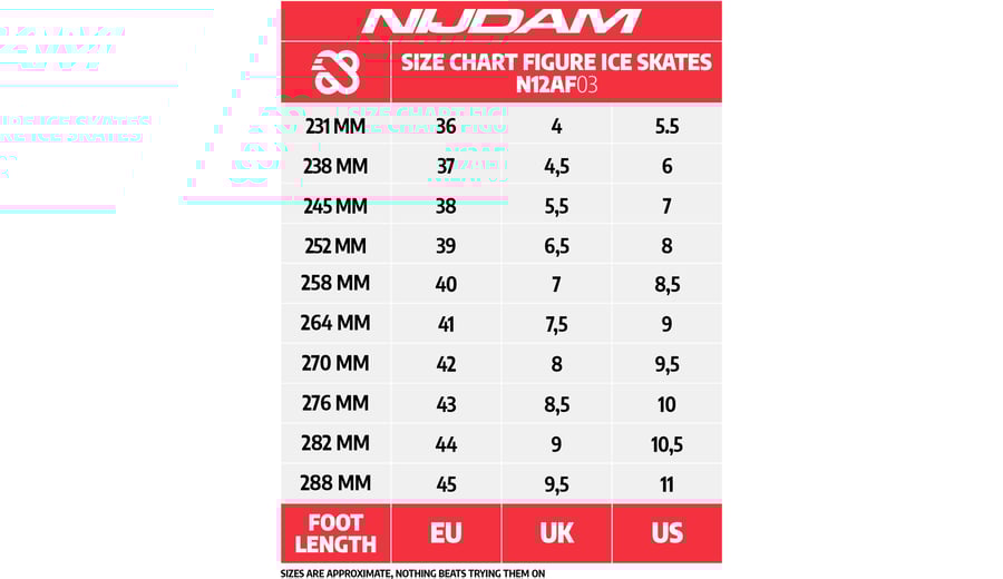 | Kenmerken | • PU lederen kunstschaatsschoen • Geborsteld echt lederen voering • Zachte EVA foam padding aan de hiel • Comfortabele polstering en ondersteuning • Vetersluiting • Geklonken roestvaststalen kunstschaatsijzers • Ijzers met kunstschaats tandjes • Schaatsijzers zijn reeds voorgeslepen |