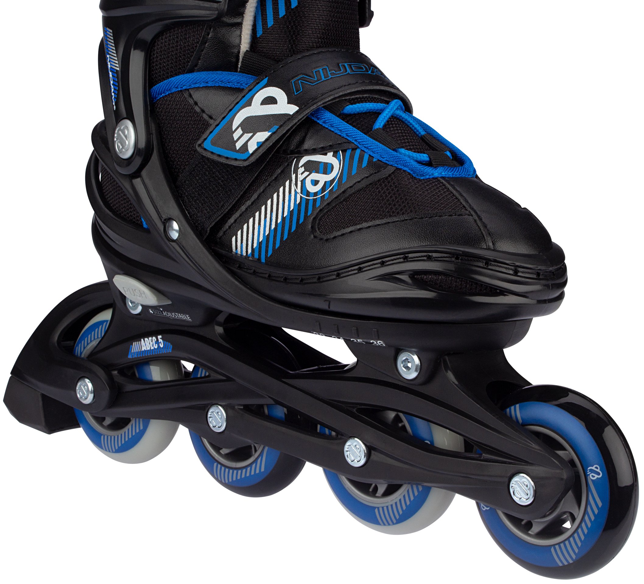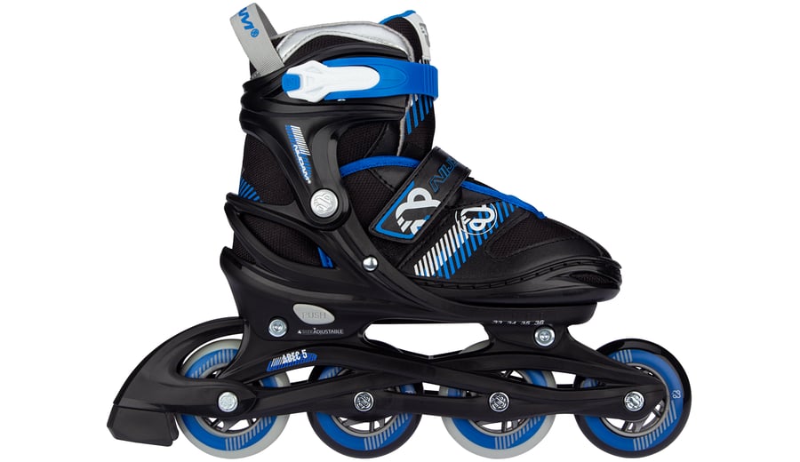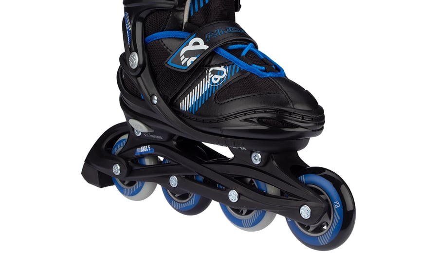 | Kenmerken | • Verstelbaar in 4 maten middels drukknopmechanisme • Quick-lock snelsluiting met PU lederen powerstrap en veters • Buitenschalen: schokabsorberend PE • Binnenschoen: comfortabel polyester, EVA en parelschuim • Chassis: high-impact PP • Wielen: PU gegoten 82A, maat 25-28: 64 x 24 mm, maten 29-32, 33-36 en 37-40: 72 x 24 mm • Lagers: gesloten ABEC 5 half-chrome • Rem: TPR 85A • Inclusief 2 inbussleutels |