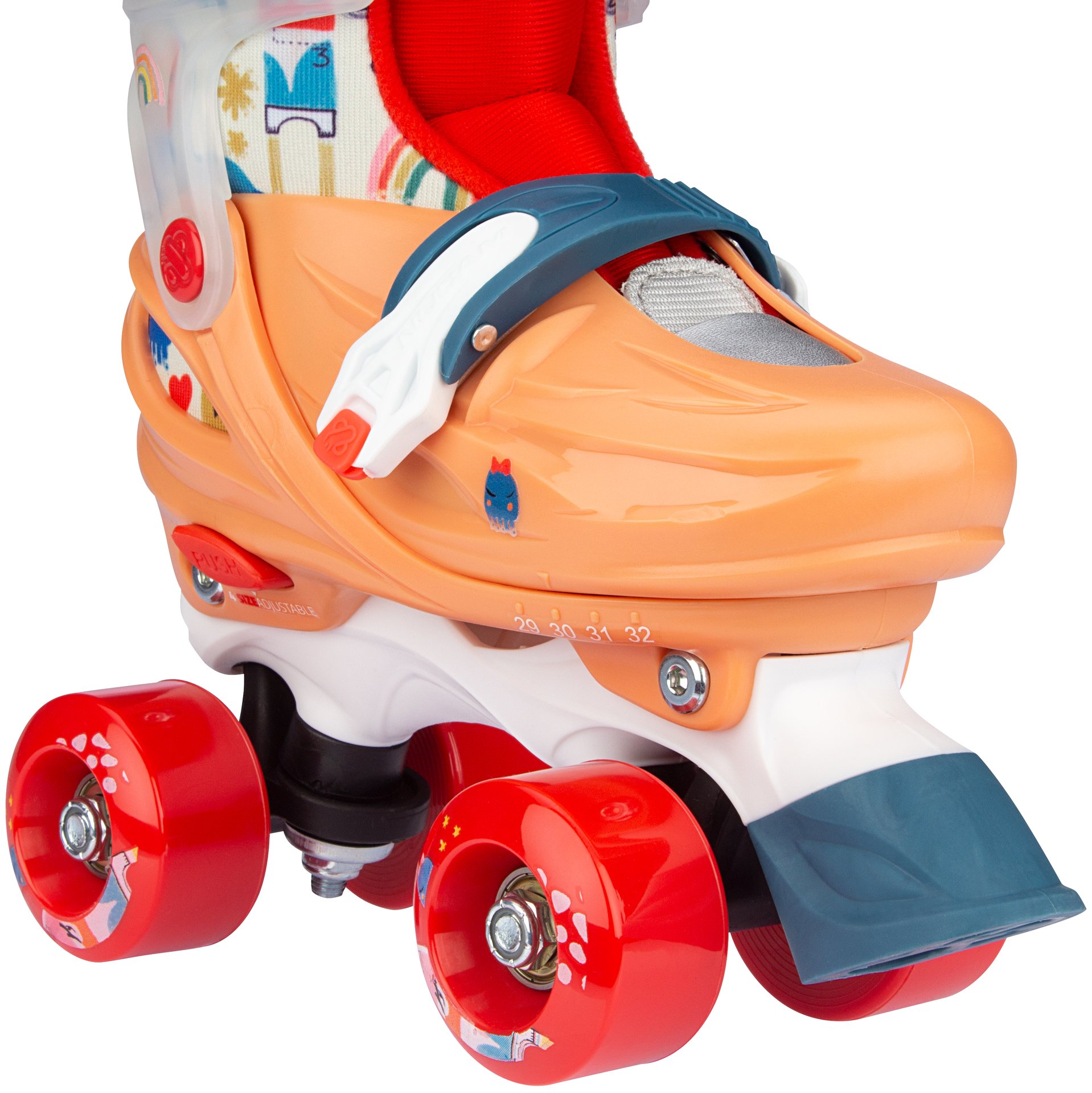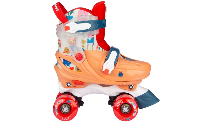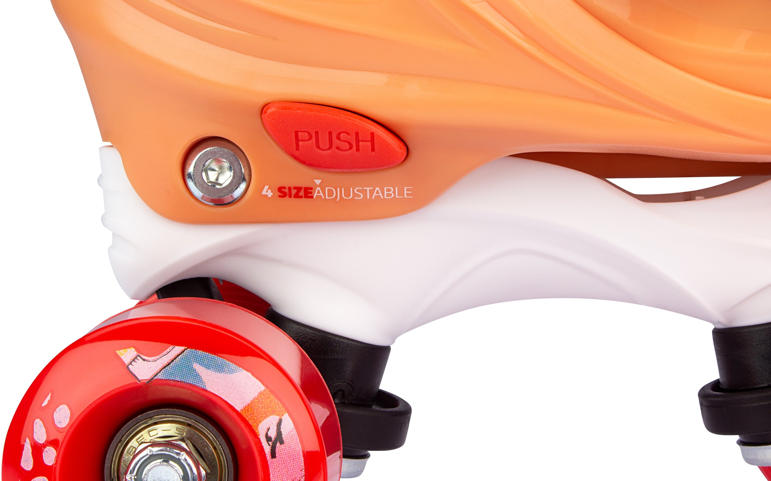 | Kenmerken | • Verstelbaar in 4 maten middels drukknopmechanisme • Quick-lock snelsluiting • Max. gewicht: 60 kg • Buitenschalen: schokabsorberende PE • Binnenschoen: comfortabel polyester, EVA, parelschuim en cotton-finish afwerking • Chassis: high-impact PP • Wielen: PU 92A, 54 x 32 mm • Lagers: gesloten ABEC 5 carbon • Rem: TPR 85A • Inclusief 2 inbussleutels & 1 extra stopper |