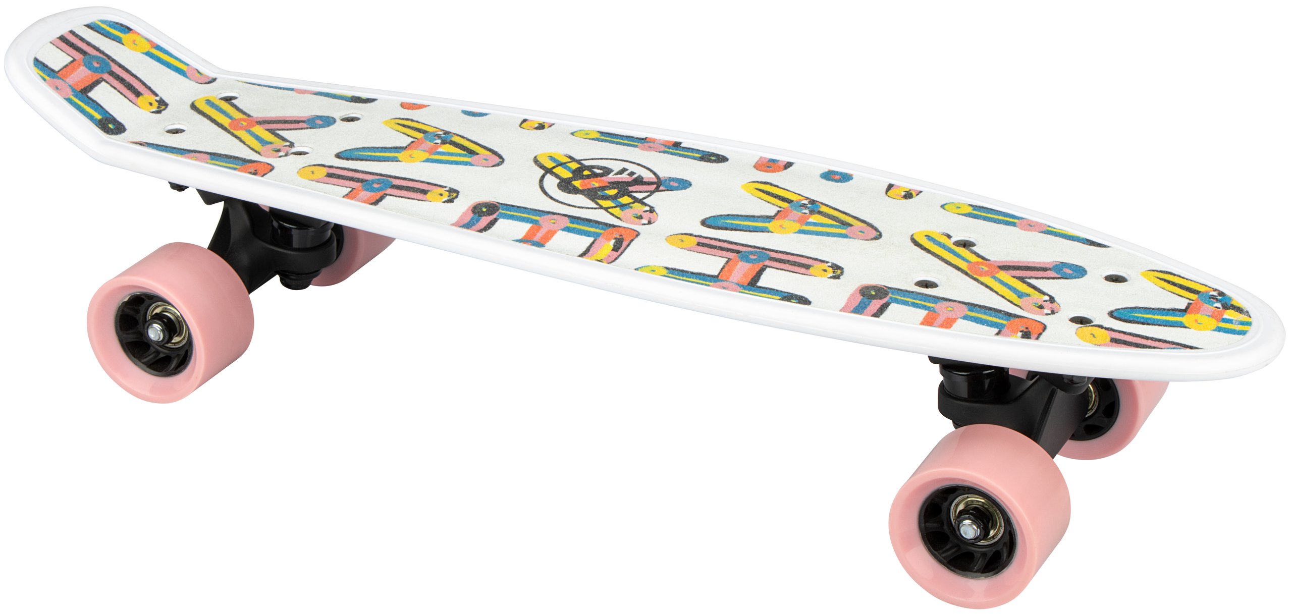 | Kenmerken | • board: kunststof gegoten met ribben voor extra stevigheid, gripprofiel op deck, 57 x 15 cm • trucks: heavy-duty aluminium, gezandstraald, PU demping • wielen: PU injectie, PP kern gespaakt, 57 x 37 mm • lagers: gesloten ABEC 5 • maximale belasting 100 kg |