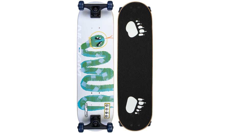 | Kenmerken | • Met voorgeboorde gaten t.b.v. verschillende plaatsing van trucks voor verschillende vaardigheidsniveaus • Board: 9-laags esdoorn met print aan onderzijde, zwarte 80AB griptape, 71 x 20 cm • Trucks: 5 inch synthetische heavy duty trucks met PU demping • Wielen: PU injectie 92A, 50 x 30 mm • Lagers: gesloten ABEC 5 carbon • Maximale belasting 50 kg (class B) |