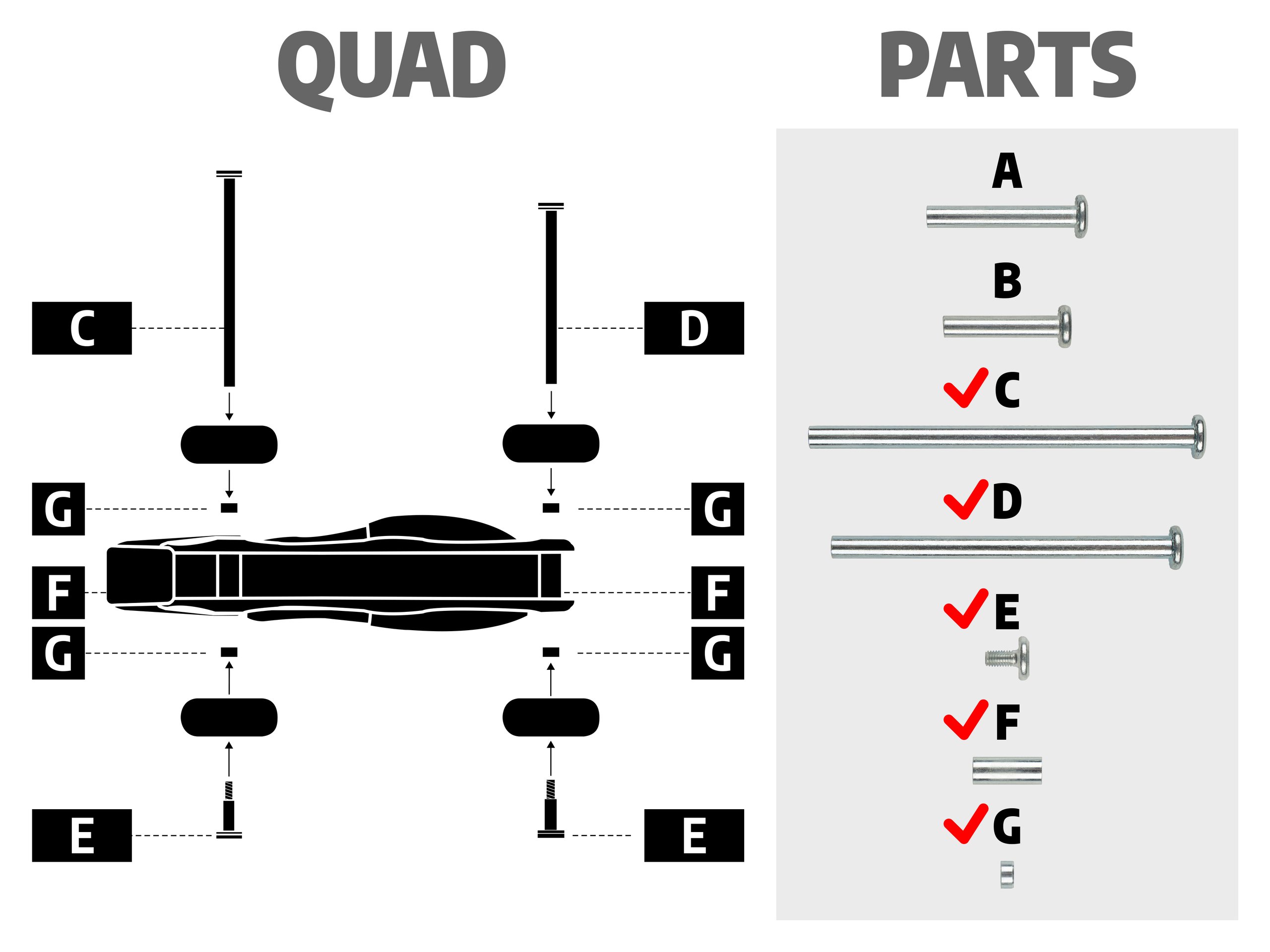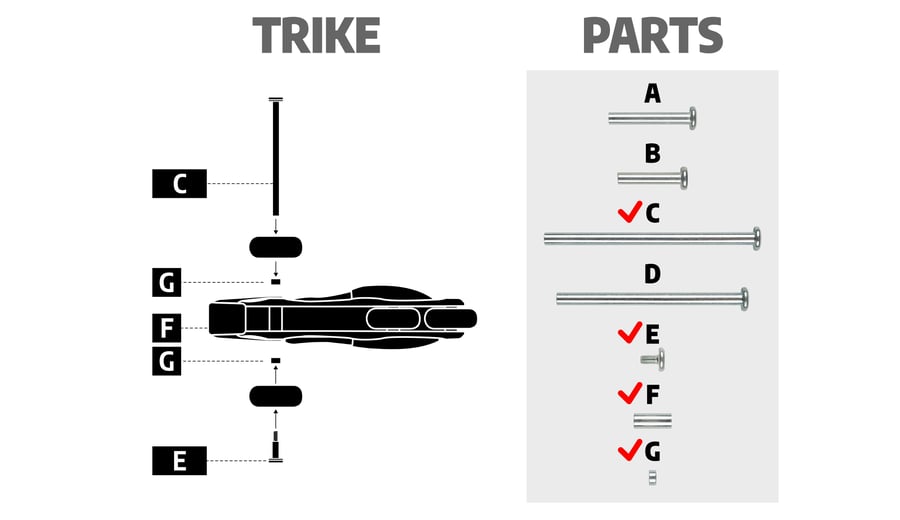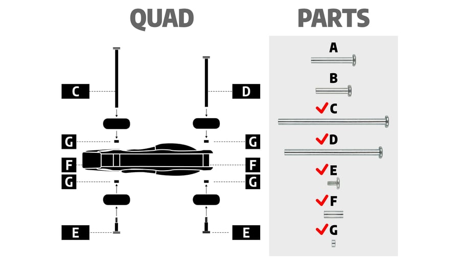 | Kenmerken | • Gehard stalen assen, schroeven en spacers voor inline skates • Geschikt voor Nijdam 3-in-1 Inline Skates in de reeks N22AA** • Complete set voor quad, trike of inline skate montage • Inclusief 2 inbussleutels |